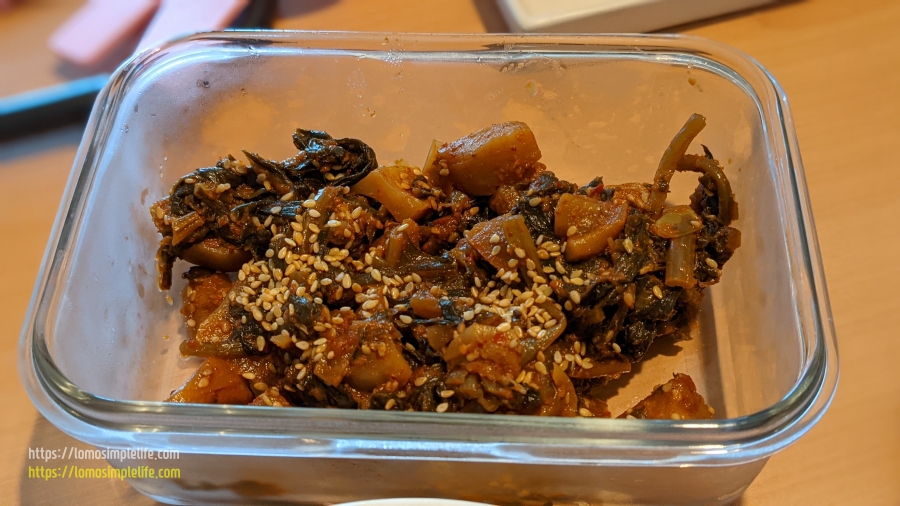 가장 맛있을 때는쿰쿰한 냄새가 나려고 하기 직전에(새콤함이 있어야 맛있다)설탕을 넣고 볶아주면 다른 반찬 없어도 밥 한 그릇 뚝딱 할 수 있다.